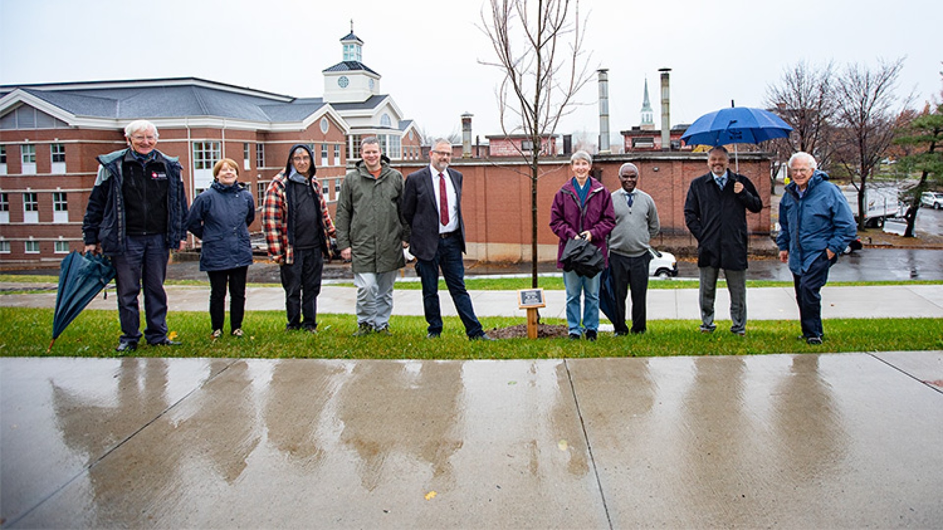The ceremony was one of many tree dedications taking place across the Atlantic region, said Dr. Robert van den Hoogen, Chair, Science Atlantic, and faculty member in the StFX Department of Mathematics and Statistics.
