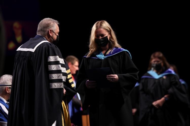 “Every single one of us had to overcome challenges to get to where we are today. Close your eyes for a minute. Think about all of the people you met on this educational journey,” graduating class speaker MaryAnne MacKeigan ’99 ’22 of Whycocomagh, NS, told classmates.
