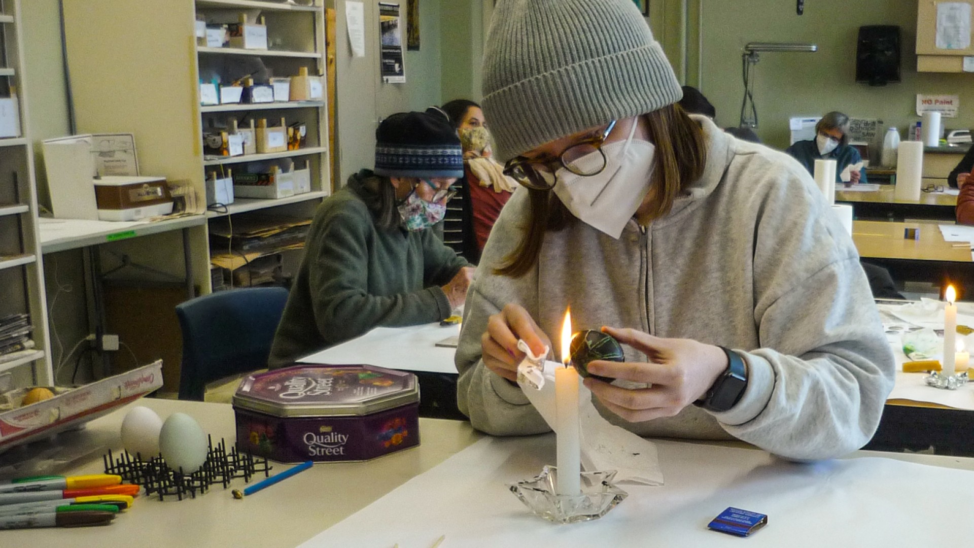 On two consecutive Sundays in March, the StFX Art Department welcomed groups of a dozen staff, faculty, students and community members, who, using dozens of fresh local eggs, were introduced to the ancient Ukrainian art of pysanky, or egg-decorating. The beginner workshops were held to raise money to support refugees and citizens affected by the invasion of Ukraine that began on February 24.