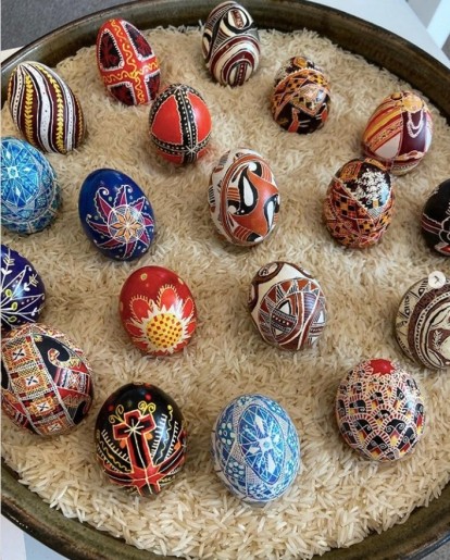 The act of creating a pysanka is meditative, says artist Marilyn Malis. “I started doing pysanky around 45 years ago. Although I am of Ukrainian heritage, I learned the art from a Ukrainian neighbour and passed it on to my family. My two sons and daughter, along with their friends, have grown up doing pysanky at Easter time. It’s a beautiful, peaceful experience creating a pysanka.”