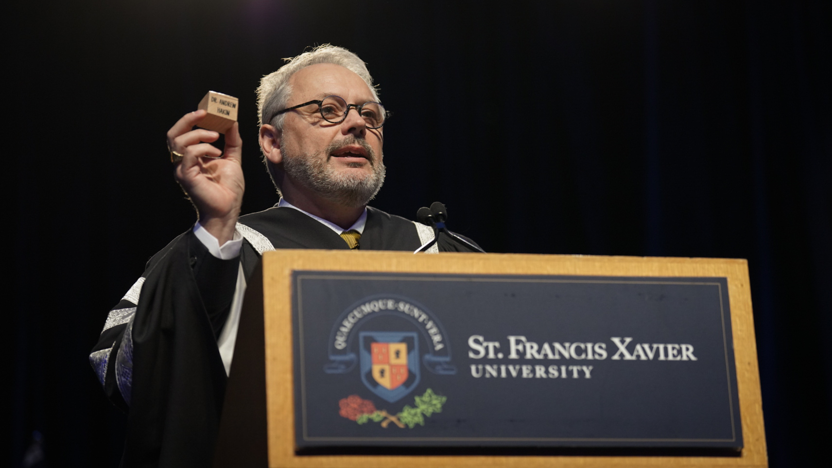 Dr. Andy Hakin, President and Vice-Chancellor of StFX, gave a heartfelt address to students. “It’s about pride. It’s about love,” he said. “The X-Ring becomes the symbol that draws you not only to each other, but to this university.”