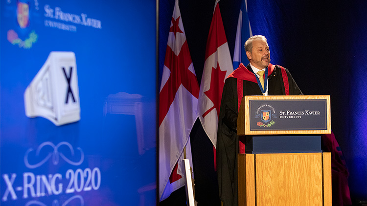 StFX President Dr. Andy Hakin, who became university president in July, noted how he too had anticipated attending his first X-Ring ceremony, and the immense disappointment of all when the ceremony had to transition from face-to-face to virtual.