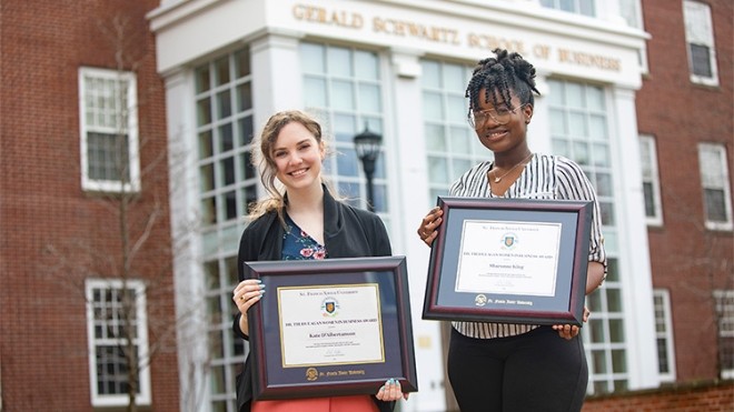 April 26, 2022 Dr. Trudy Eagan Women in Business Awards presented to students Sharonne King and Kate D’Albertanson